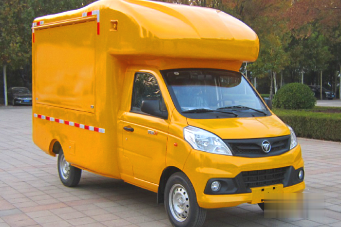 祥菱V1轴距半承载汽油售货车的厢体上安装有防雨电源插座,配备遮阳棚,内部可加装售货架、售货平台,可用于熟食、冷荤快餐、百货、瓜果蔬菜、玩具礼品、服装等售卖。