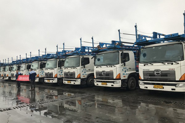 重庆嘉川现有车辆530台,在这支浩浩荡荡的“轿运车运输大军”中,180台还未置换的牵引车,10台为今年购置的广汽日野J08牵引车,350台为中置轴轿运车,其中,广汽日野中置轴轿运车就占105台。